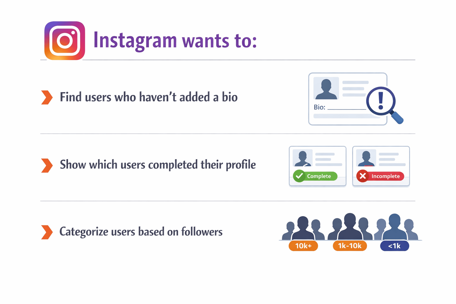 WHERE bio IS NOT NULL;Shows users with completed profiles.