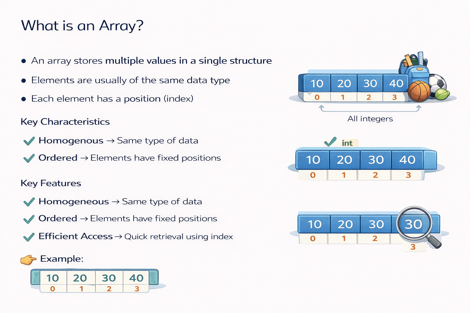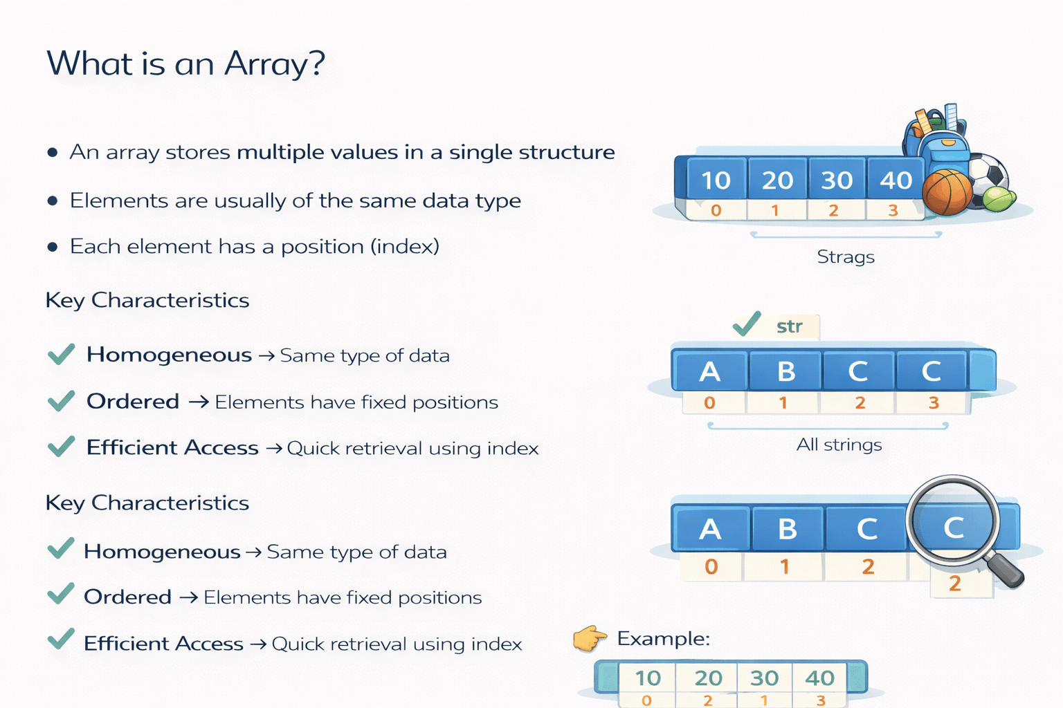 A 1D array is a simple list of elements, similar to a traditional Python list