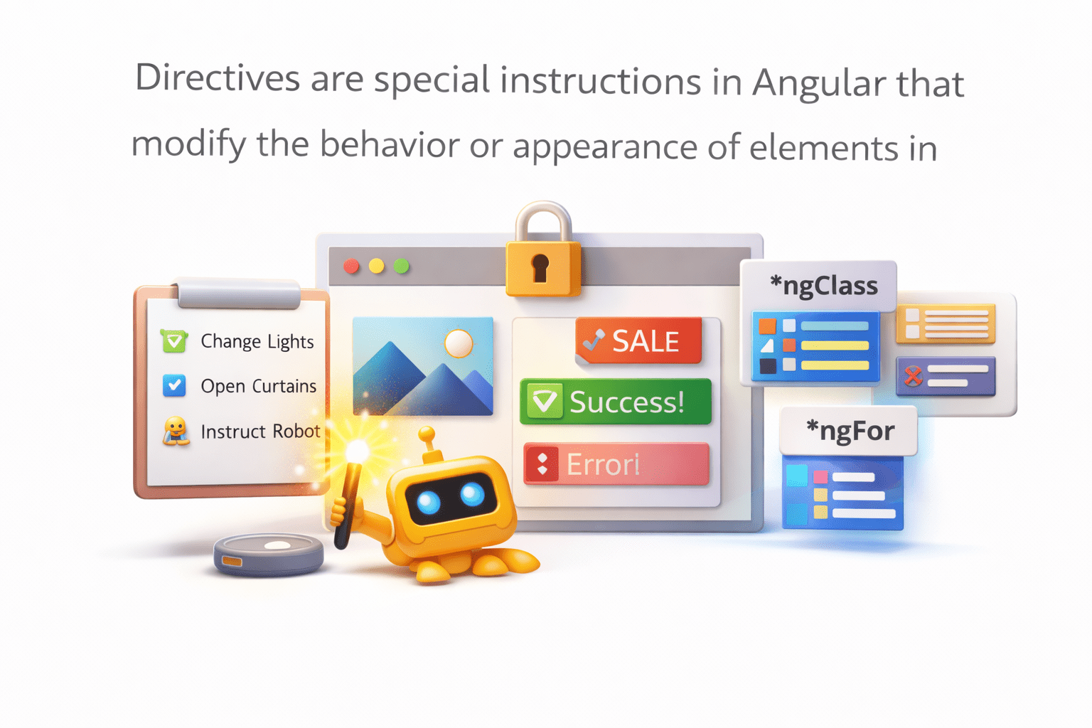 Directives control behavior and appearance of HTML elements without changing their structure.