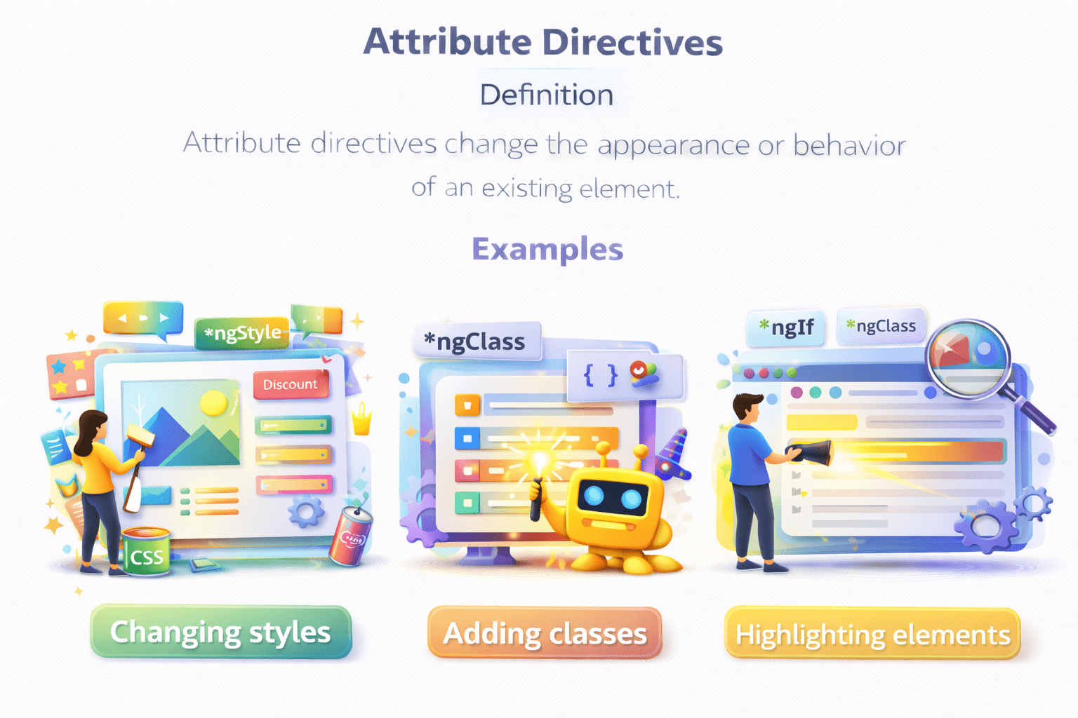 Use attribute directives for styling and behavior