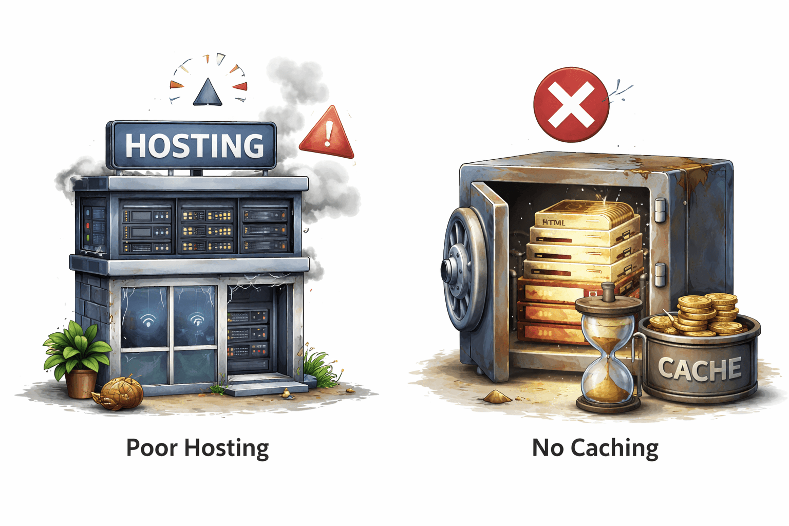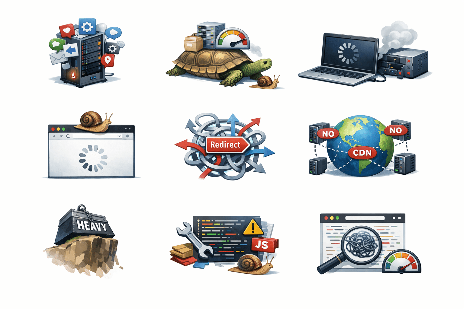Many technical factors can slow a website
