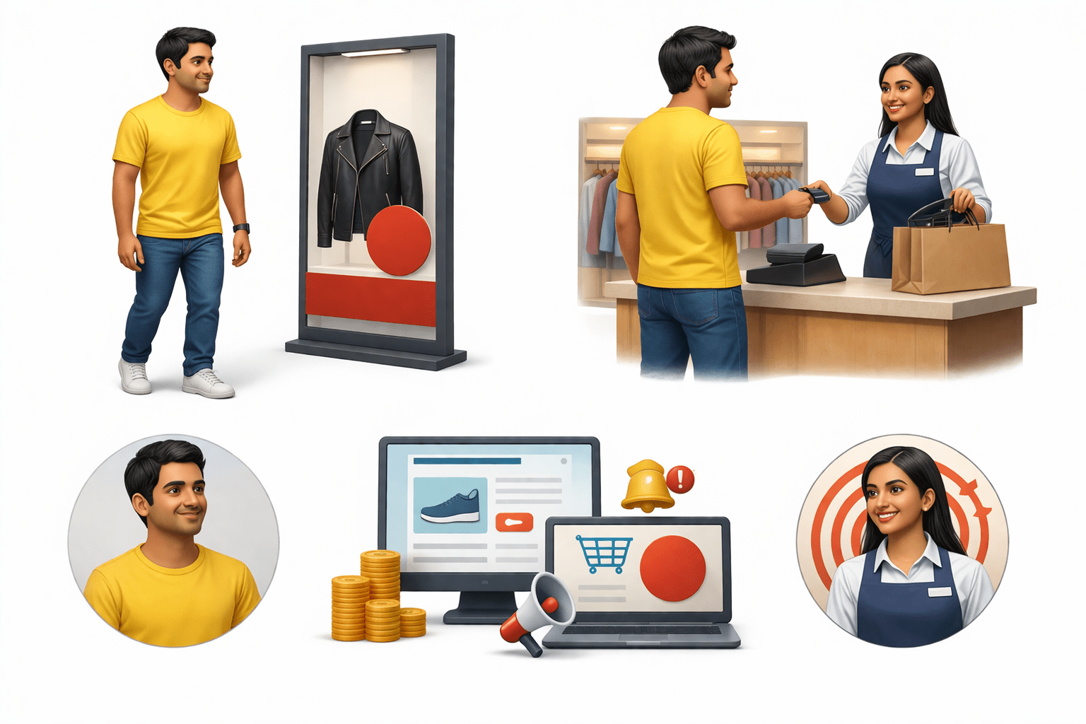Just like Neha reminded Aman about the jacket he liked and brought him back to the store, in digital marketing retargeting reminds website visitors about products they showed interest in and brings them back through ads.