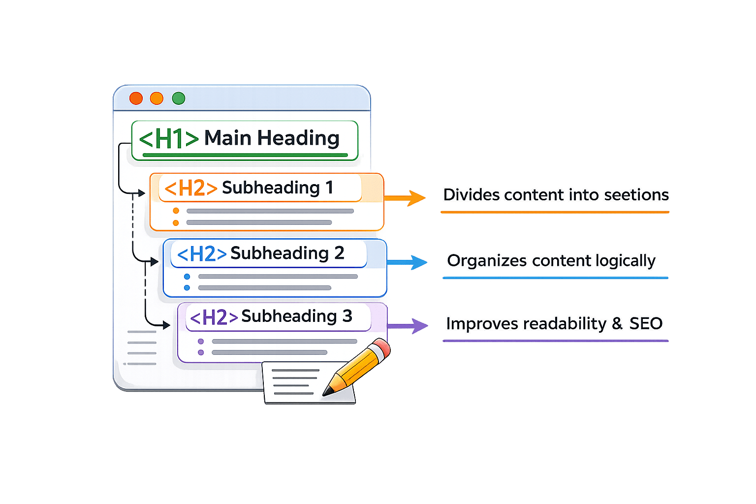 Proper headings, keywords, and structure improve readability