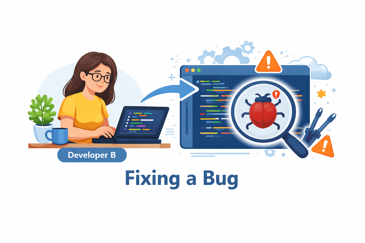 Developer B fixes a bug