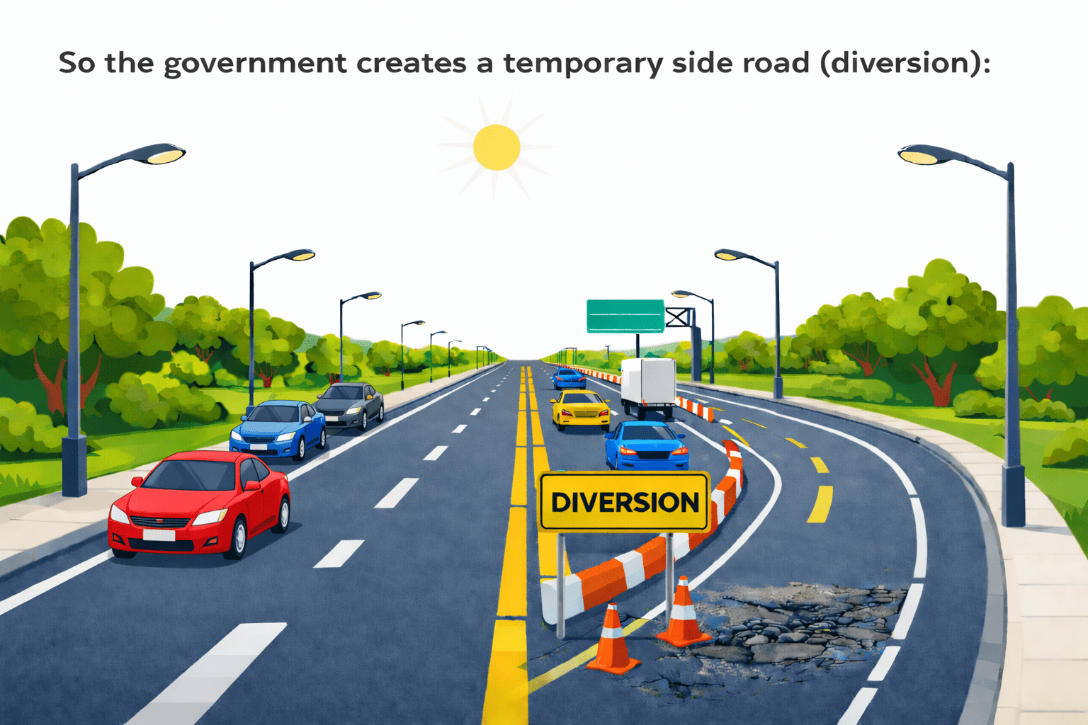 So the government creates a temporary side road (diversion):