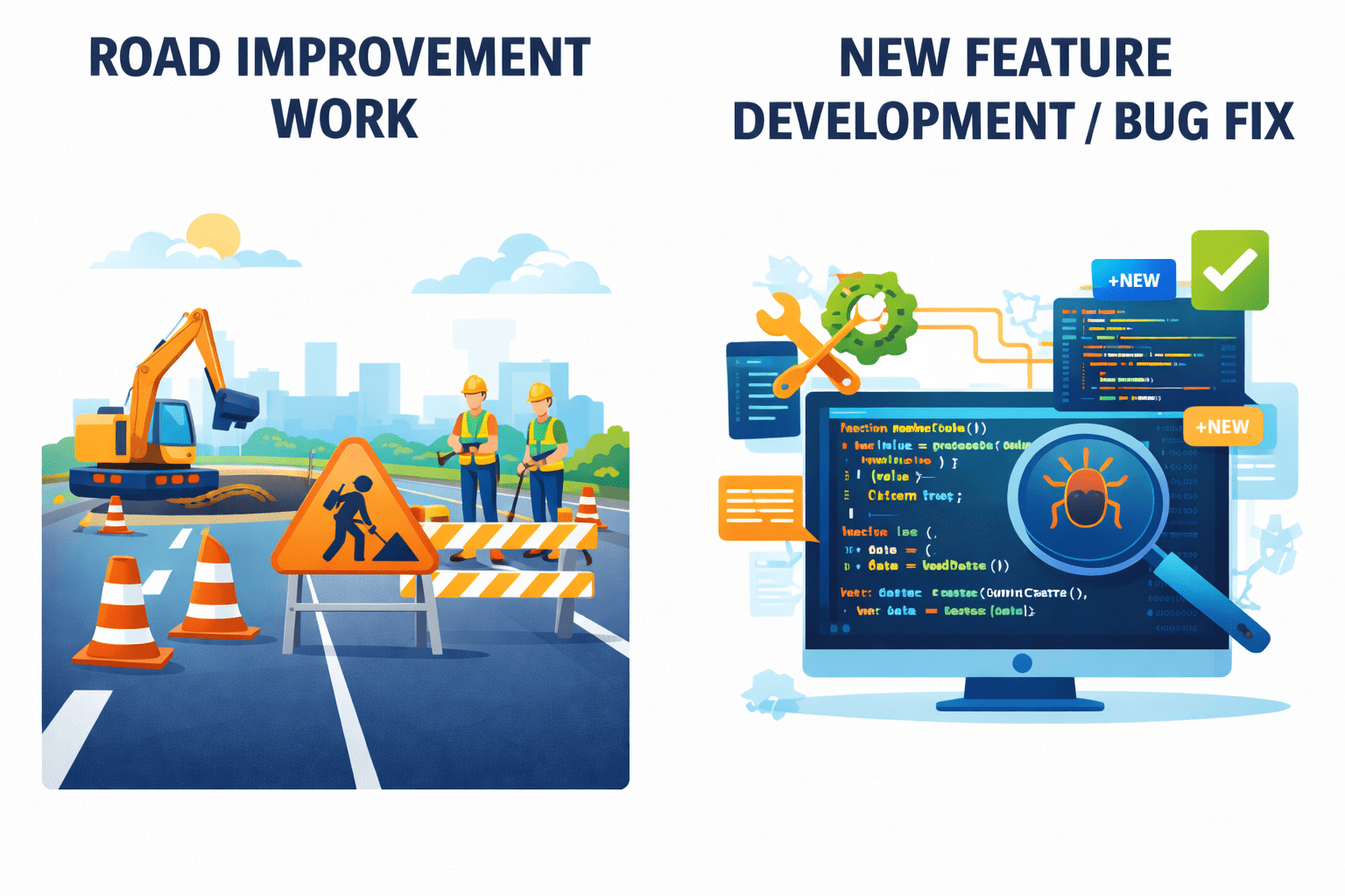 A part of the road needs improvement (new feature or change), but traffic must continue safely