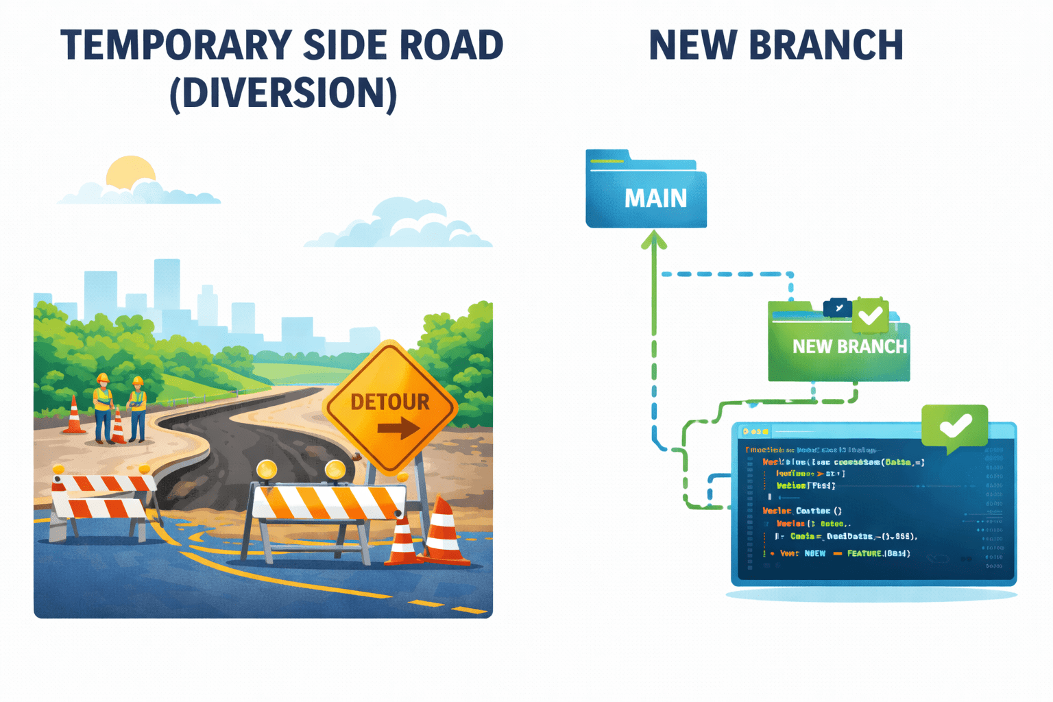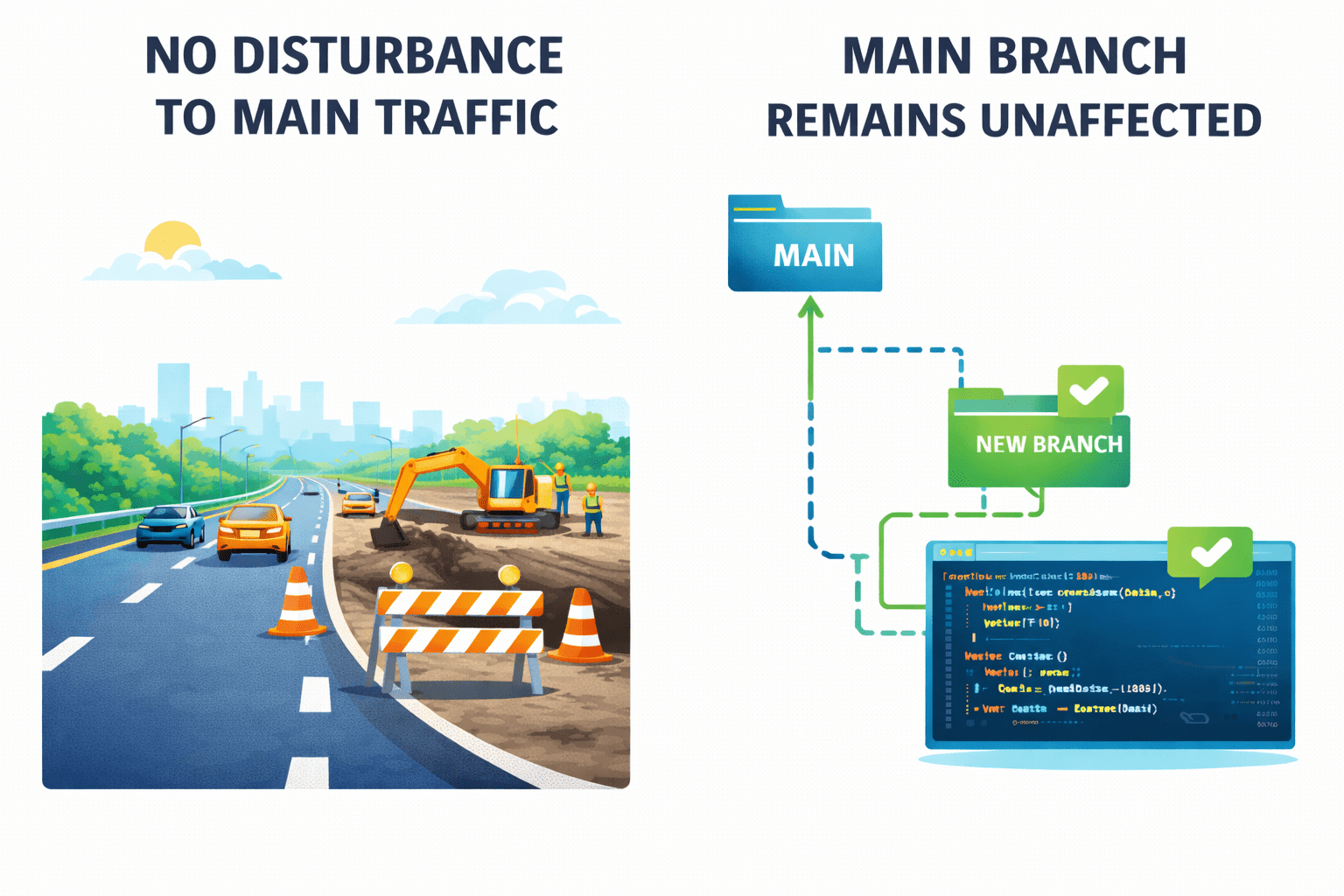 Branching prevents breaking the main project