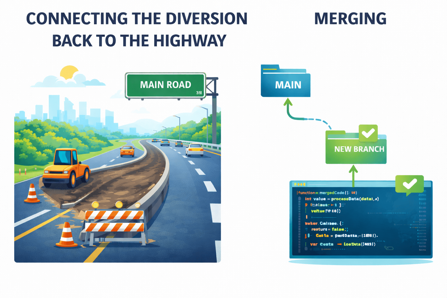 Merging helps combine completed work smoothly