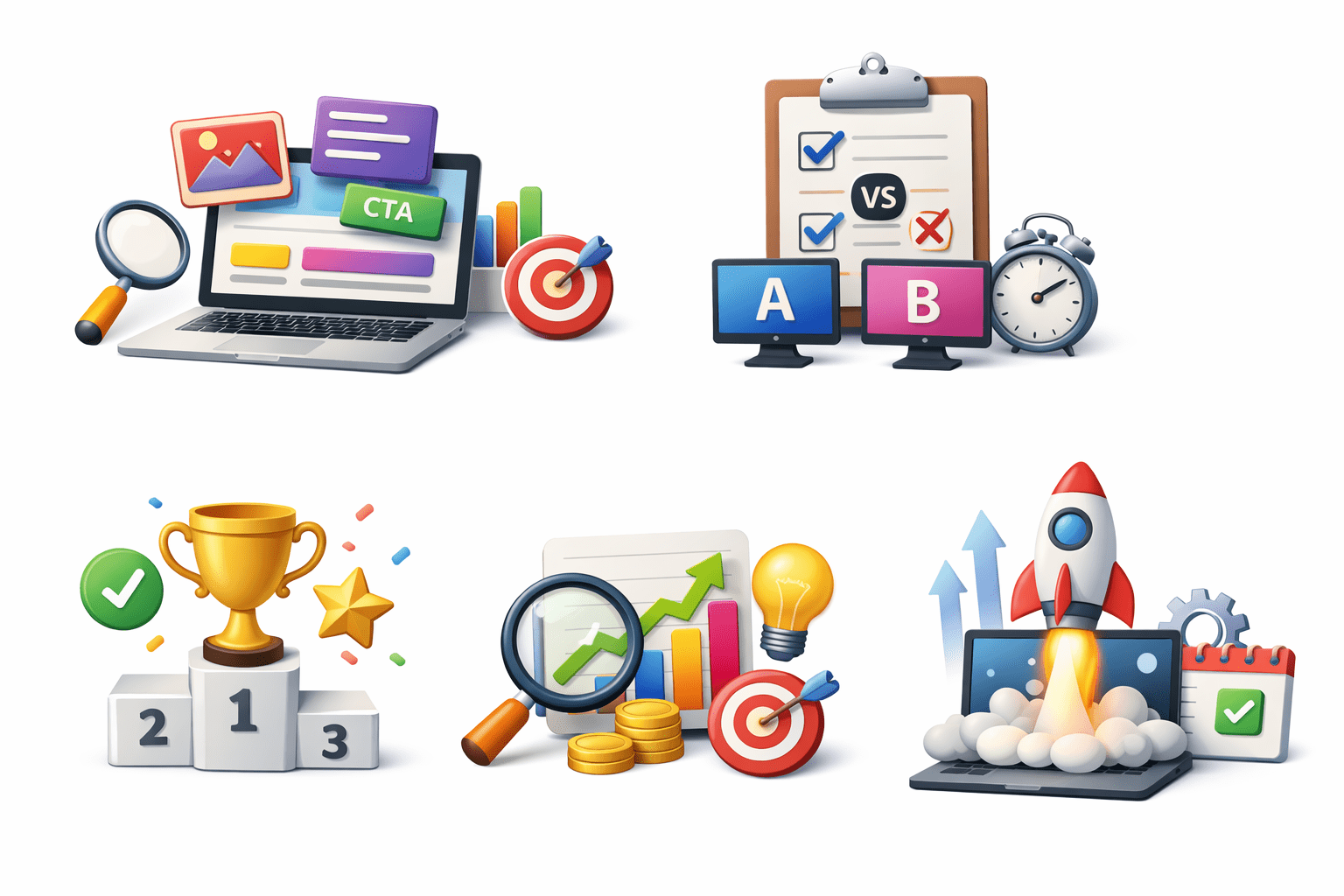 Test creatives, headlines, CTAs, audiences, placements