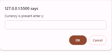 So, now the loop has started executing, prompting the user to enter 'y' if currency is present and 'n' if not