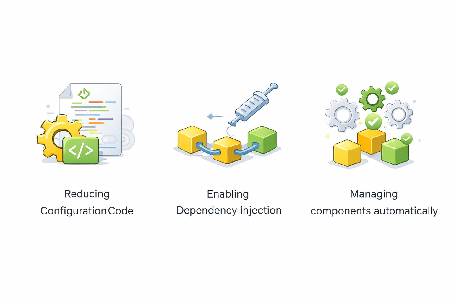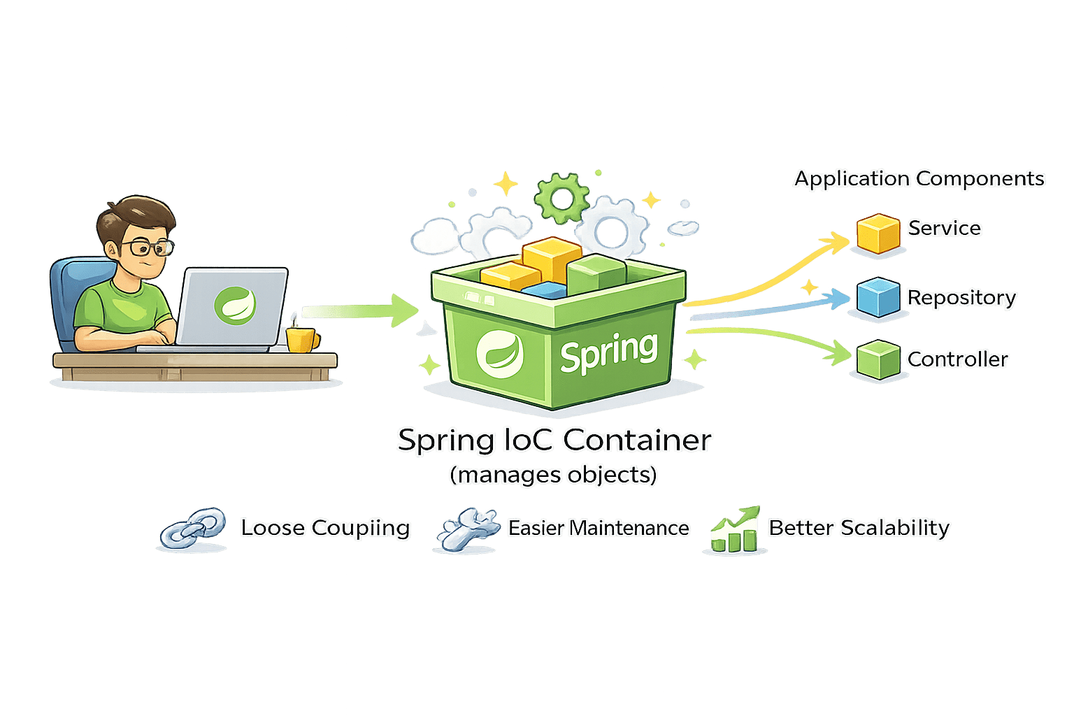 This helps in reducing tight coupling between classes and makes the application easier to maintain and test.