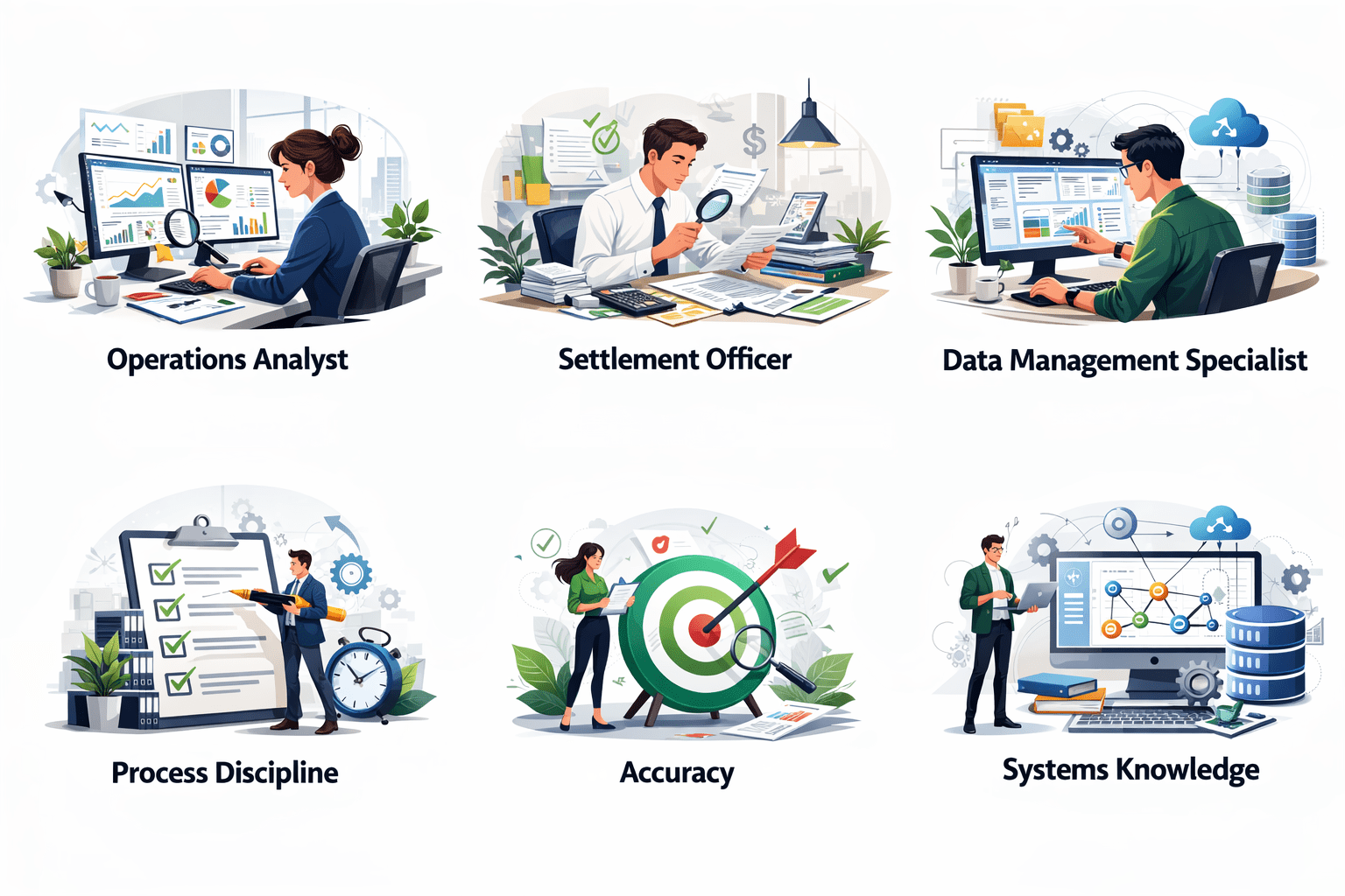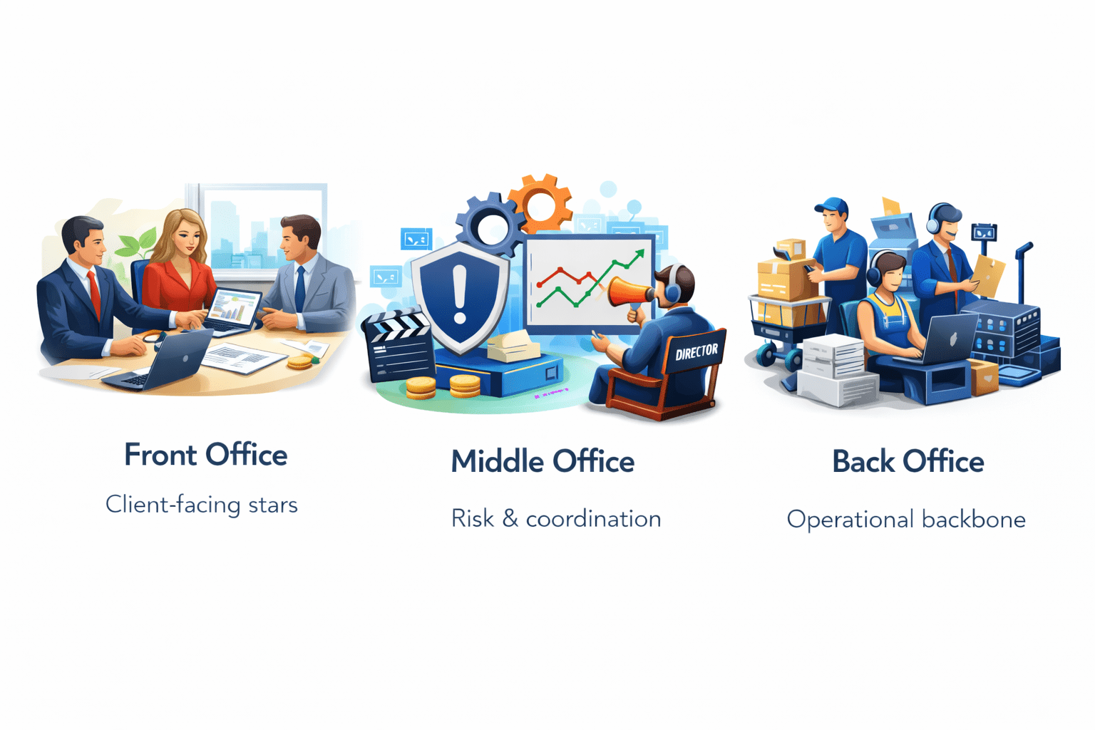 Differentiate front, middle, and back office roles