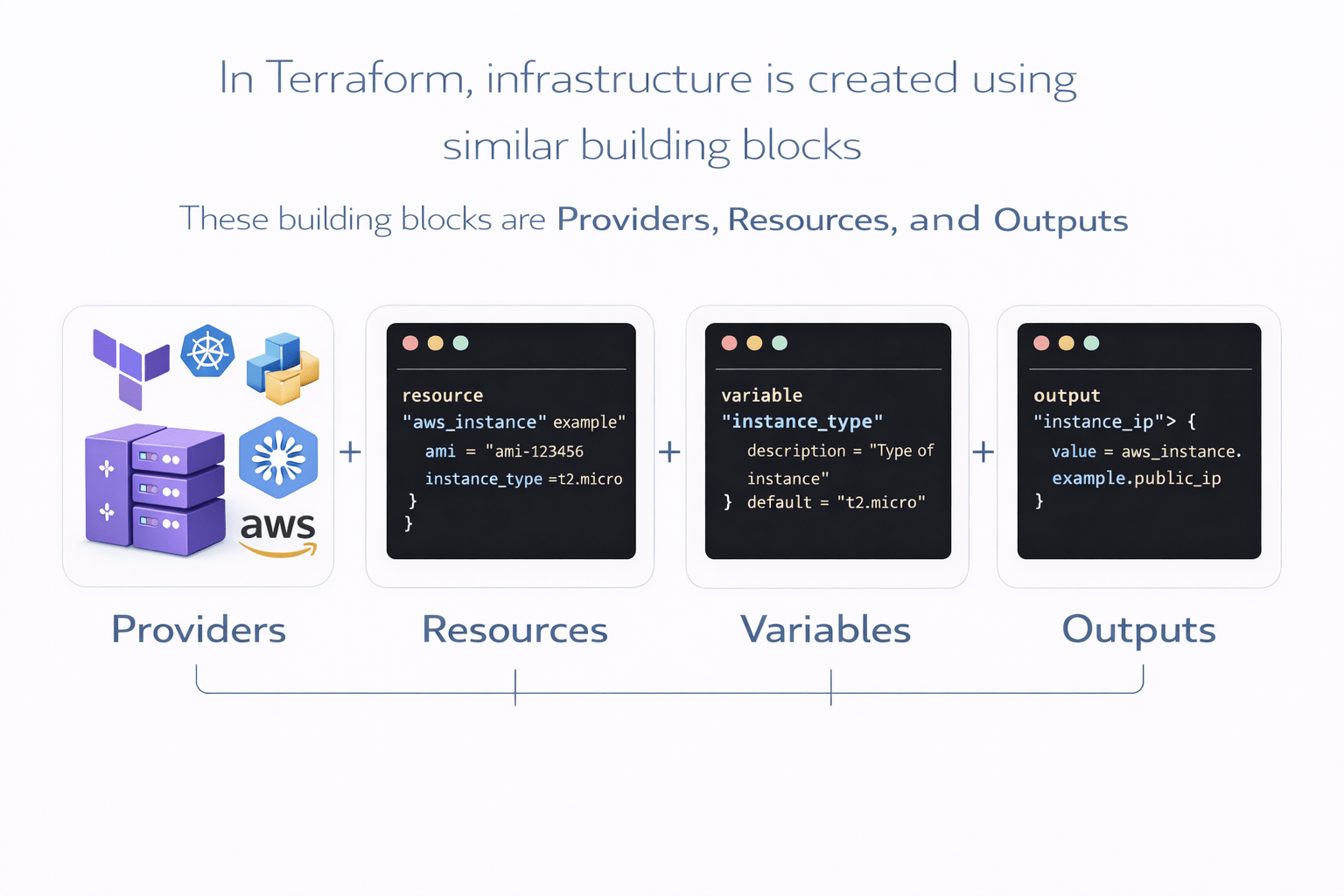 Understand how Providers, Resources, Variables and Outputs work together in Terraform
