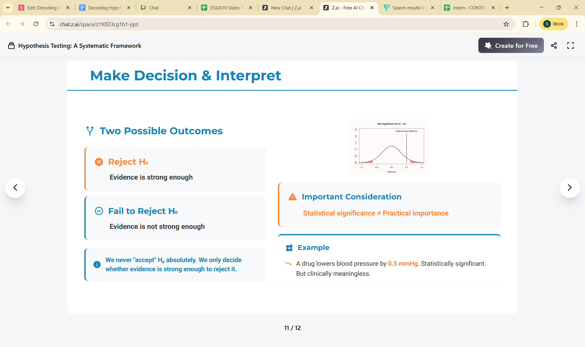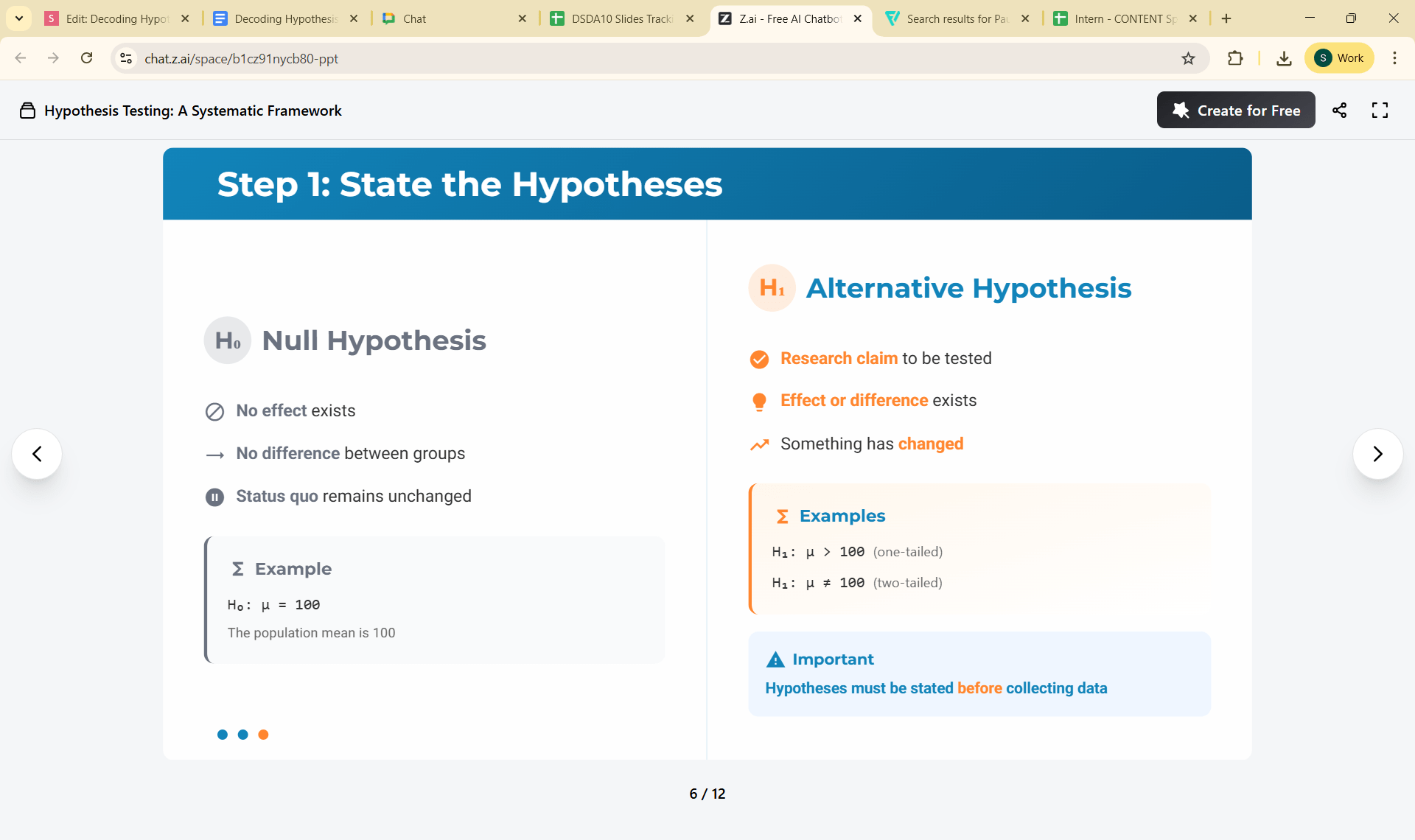 H₀: no effect; H₁: research claim