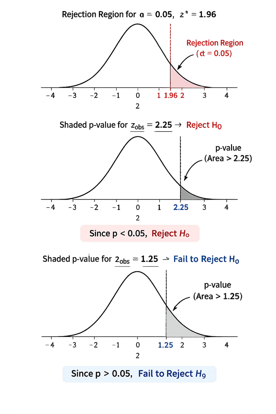 Smaller p-value → Stronger evidence against H₀