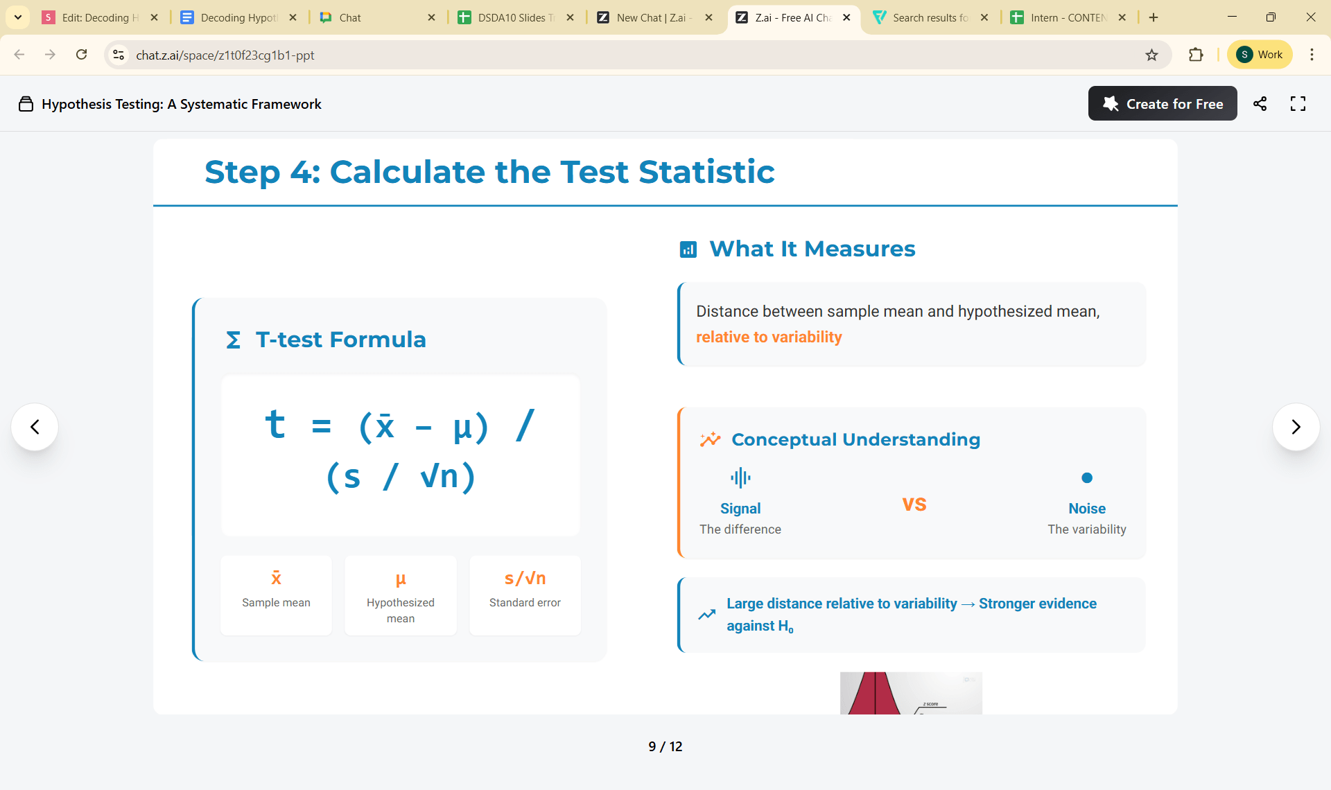 Measures how far the sample mean is from the hypothesized population mean