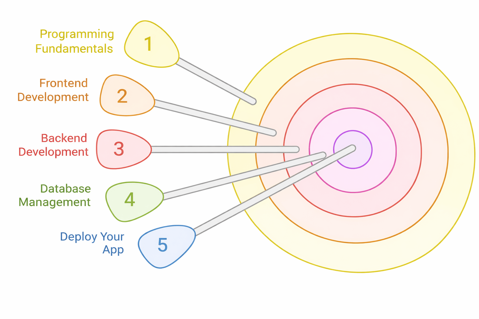The journey begins with programming fundamentals in Java, progresses through frontend and backend development, integrates databases and APIs, and culminates in building and deploying scalable enterprise full-stack applications.