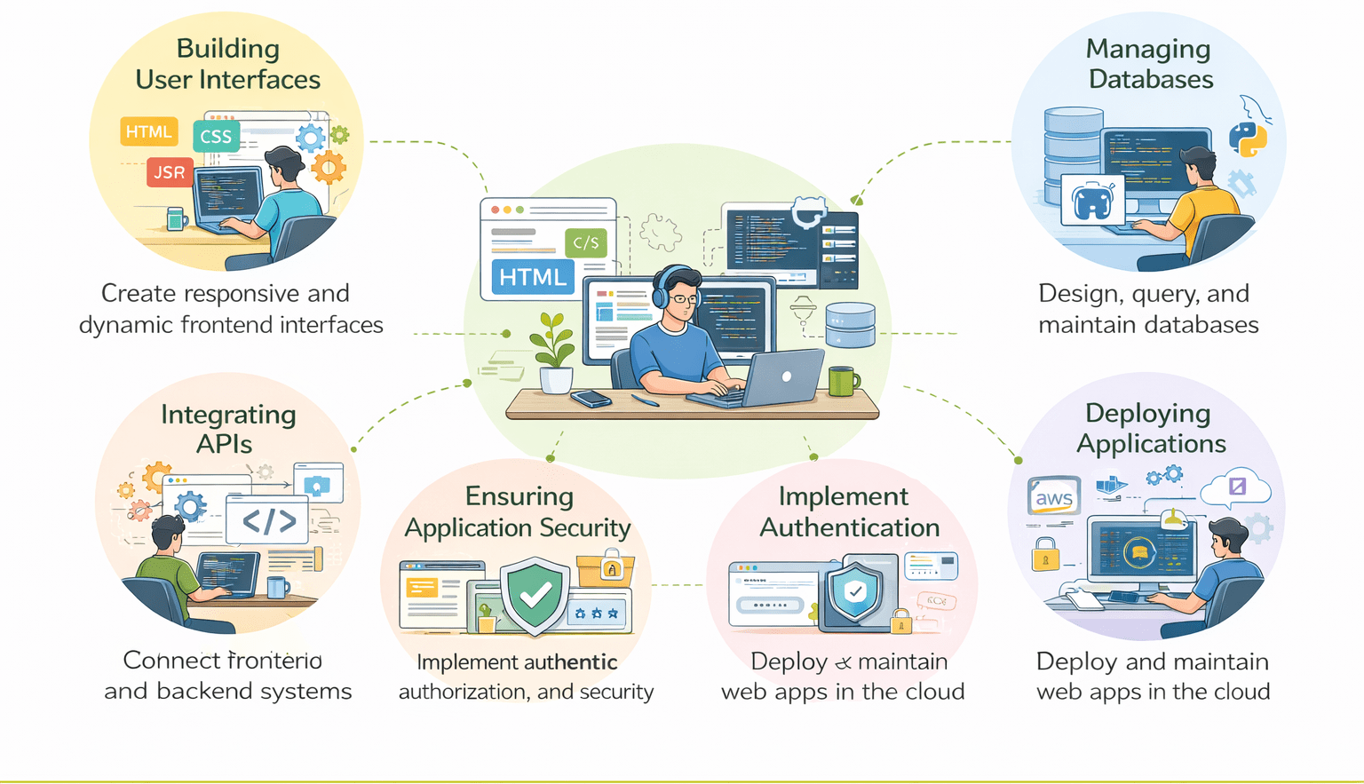 Learners develop end-to-end development skills, mastering both frontend and Java-based backend technologies to build secure, scalable, real-world enterprise applications.