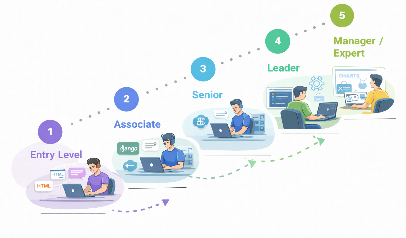 Growth:- Junior Dev → Software Developer → Senior Developer → Tech Lead