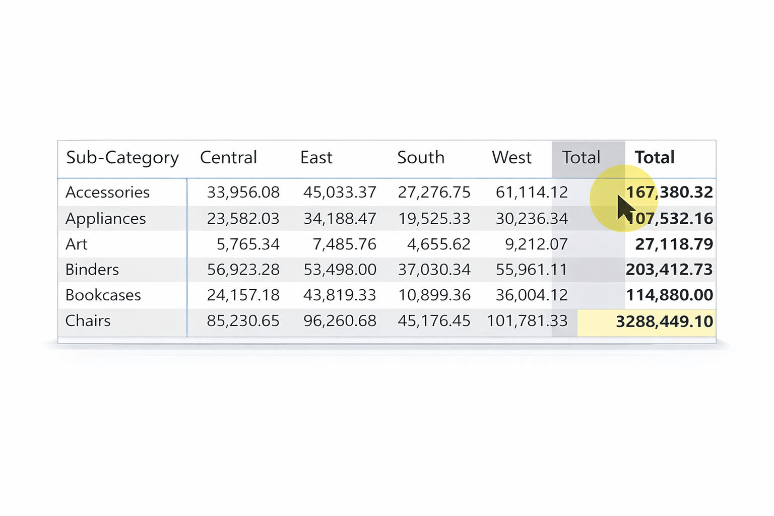 Multi-dimensional visual similar to pivot tables