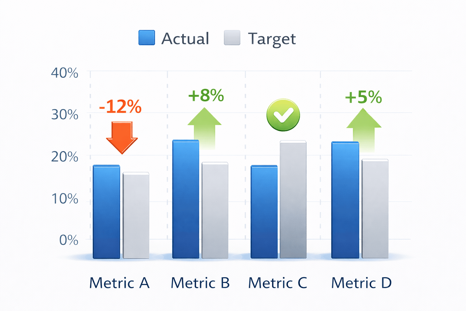 Compare actual values against targets