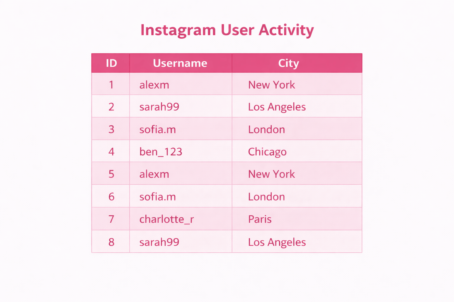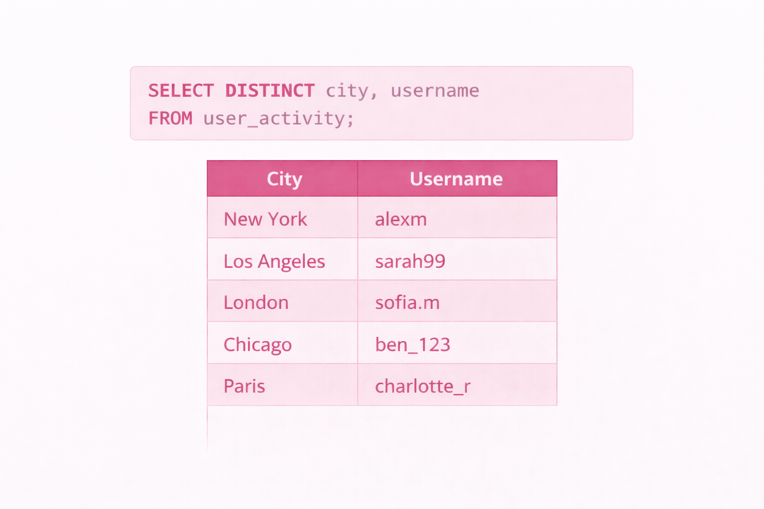 Imagine a scenario where you want to fetch only the unique city and usernames from a table