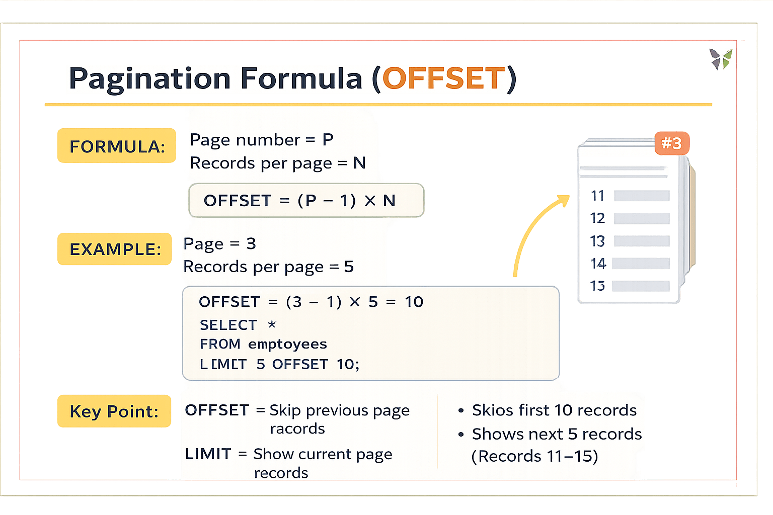 LIMIT 5 OFFSET 10;Pagination is used to fetch records page-by-page