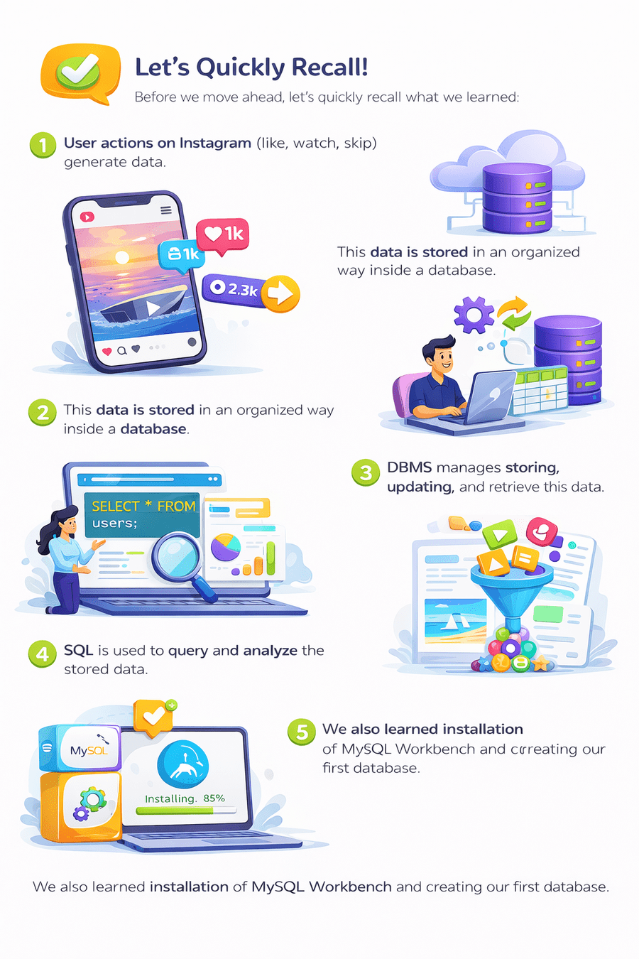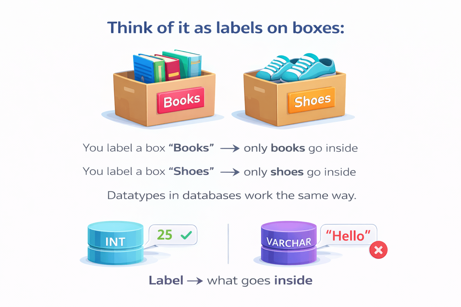 Just like your phone organizes contacts by name, number, photo, and birthday, a database needs “datatypes” to store each kind of data correctly.