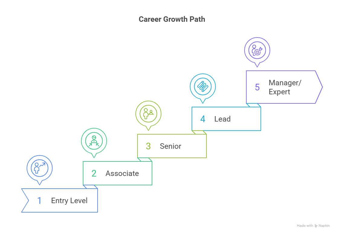 Growth: Entry → Associate → Senior → Lead → Security Expert / Manager