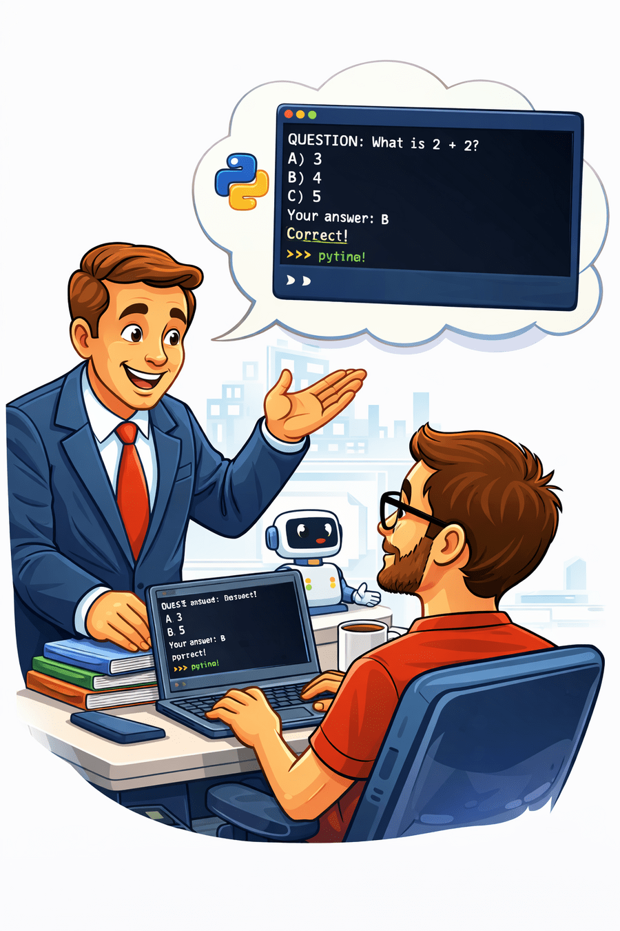 Create an interactive quiz application in Python.
