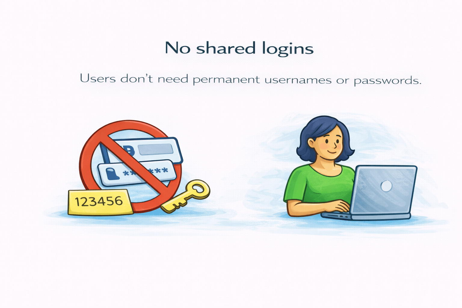Users don’t need permanent usernames or passwords