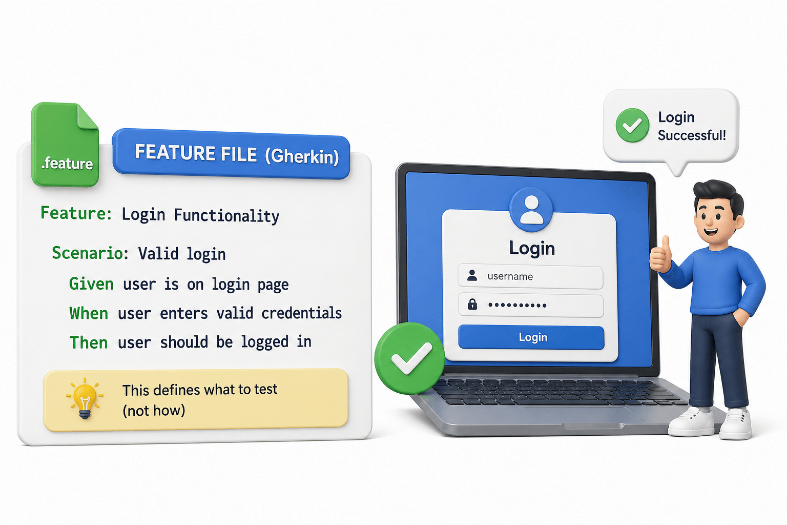 Gherkin shows the path, step definitions make the journey happen.