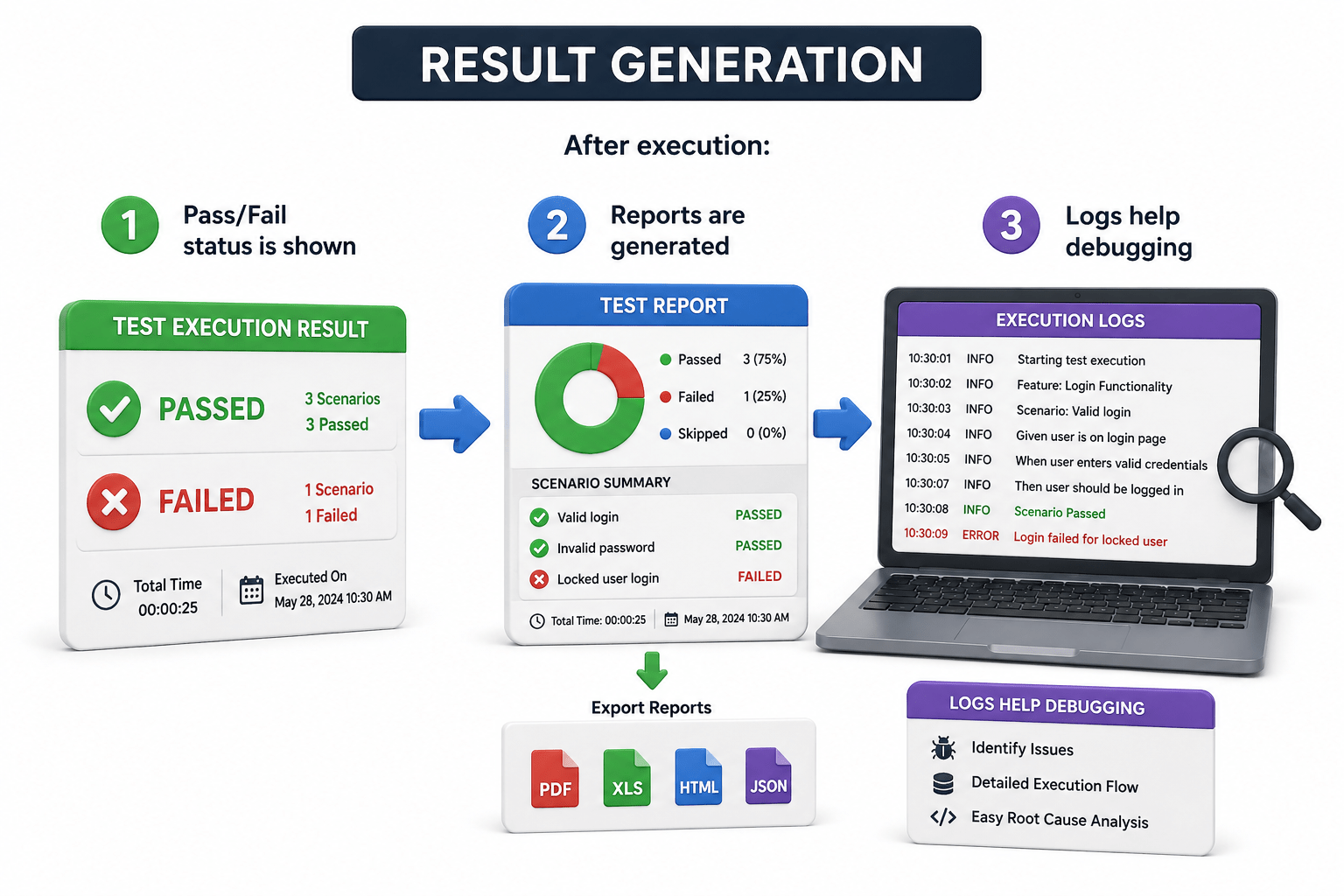 Integrate with JUnit/TestNG for execution and reporting