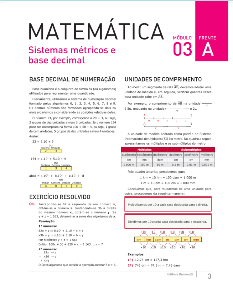 SISTEMAS MÉTRICOS E BASE DECIMAL