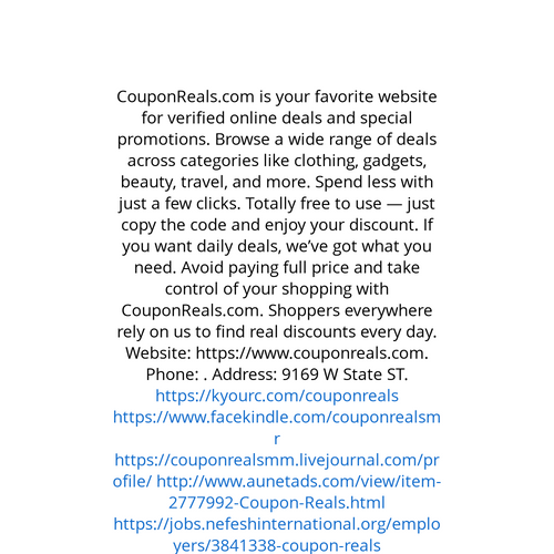 Website: https://www.couponreals.com. Welcome to CouponReals.com, the ultimate destination for verified online deals and limited-time deals. Search a wide range of savings opportunities across categories like clothing, gadgets, beauty, travel, and mo