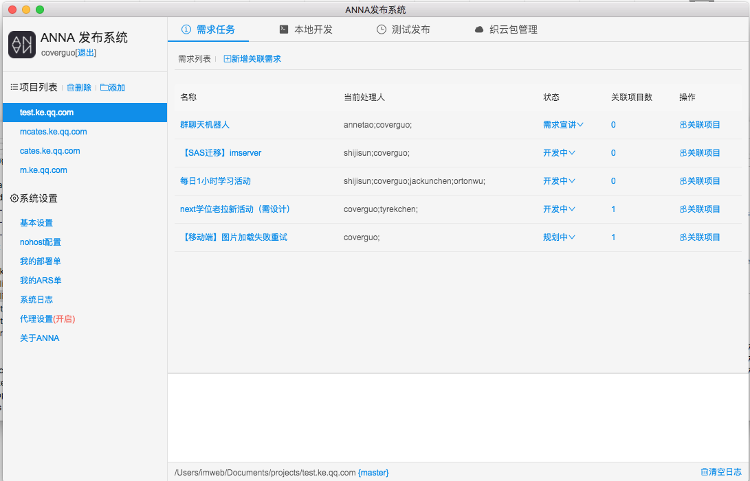 项目绑定需求单、发布周知(短信、邮件)、转单