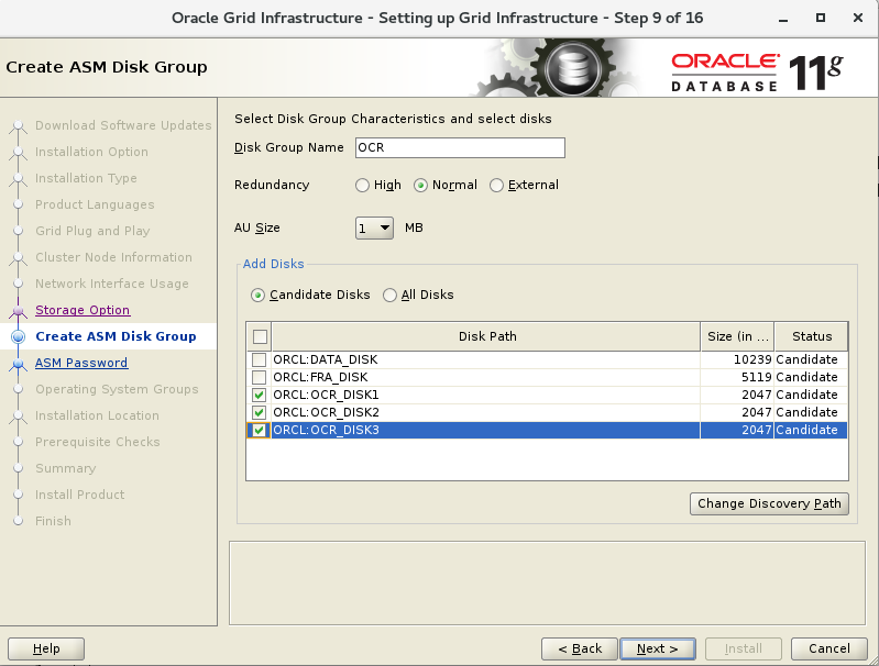 3. ONLINE 45bf226a38a44f0ebfd7d6a416bae988 (ORCL:OCR_DISK3) [OCR]