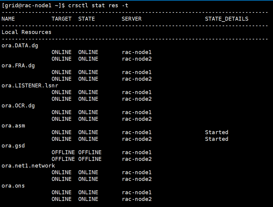 1. ONLINE 960367736e824f39bf4a8e707e974b9e (ORCL:OCR_DISK1) [OCR]