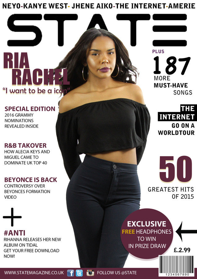 Here is the second draft of my front cover. I took on the feedback from my first draft and applied it to this cover.I decided to add more features to the front cover also i decided to have a white background in order for the main image and text to stand out. However i found that the main image was still not working. There is quite allot of space surrounding the model. Personally i feel the model is unable to carry the RnB vibe needed for my magazine. In response to this i am going to take a range of new photographs with a new model, this will consist of a whole new outfit. The colour scheme of Black and purple will be changed to other colours in my research such as yellow, orange and navy. The layout go my front cover will be experimented with changing a few of the cover stories i have included.