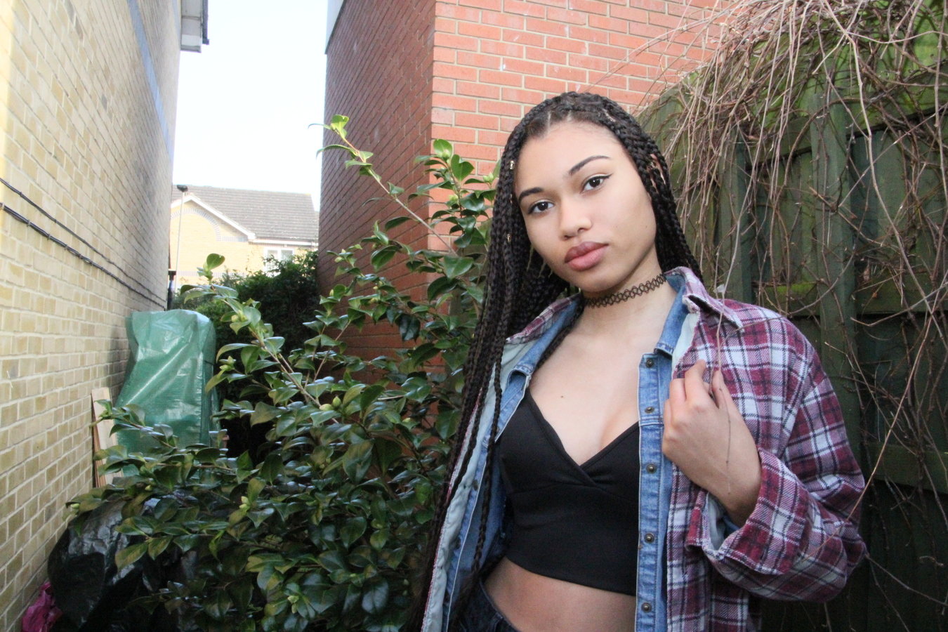 I decided to take these images after the first set of images weren't working in the production of my magazine. Audience feedback stated that the images conformed more to a fashion magazine than a music. This was due to the shot type which allowed more focus on the clothing, the poses of the model also made it seem she was advertising the clothing. I chose these particular individual images because they show a range of camera shots and body positioning ranging from a medium shot to a medium close up. The urban scenery worked very well in these images reflecting the R&B genre which is why i decided to use these on my magazine instead.
