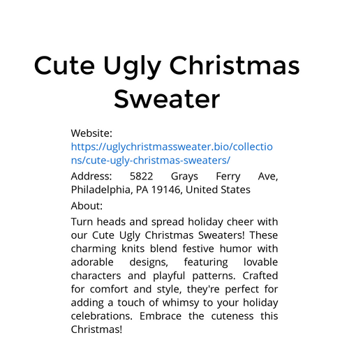 Turn heads and spread holiday cheer with our Cute Ugly Christmas Sweaters! These charming knits blend festive humor with adorable designs, featuring lovable characters and playful patterns. Crafted for comfort and style, they're perfect for adding a