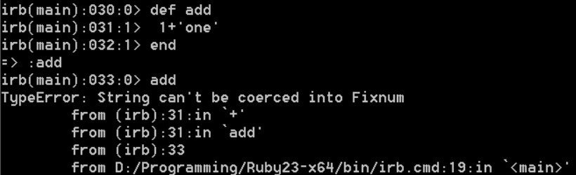 Ruby does not do type checking until you actually try to execute code. This concept is called dynamic typing.