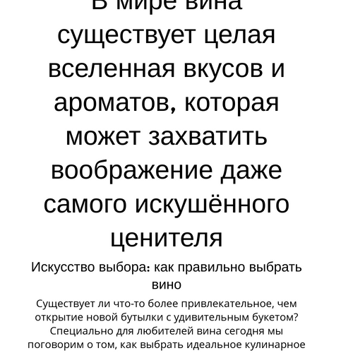 Каждое вино — это история, которую стоит рассказать. Не упустите шанс расширить свои горизонты и открыть для себя мир уникальных вкусов.