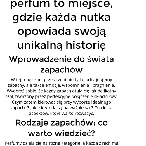 W tej magicznej przestrzeni nie tylko odnajdujemy zapachy, ale także emocje, wspomnienia i pragnienia. Wyobraź sobie, że każdy zapach otula cię jak delikatny szal, tworzony przez perfekcyjne połączenie składników. Czym zatem kierować się przy wyborze idealnego zapachu? Jakie kryteria są najważniejsze? Oto kilka aspektów, które warto rozważyć.