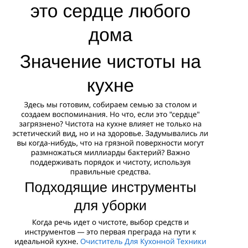 Здесь мы готовим, собираем семью за столом и создаем воспоминания. Но что, если это "сердце" загрязнено? Чистота на кухне влияет не только на эстетический вид, но и на здоровье. Задумывались ли вы когда-нибудь, что на грязной поверхности могут размножаться миллиарды бактерий? Важно поддерживать порядок и чистоту, используя правильные средства.