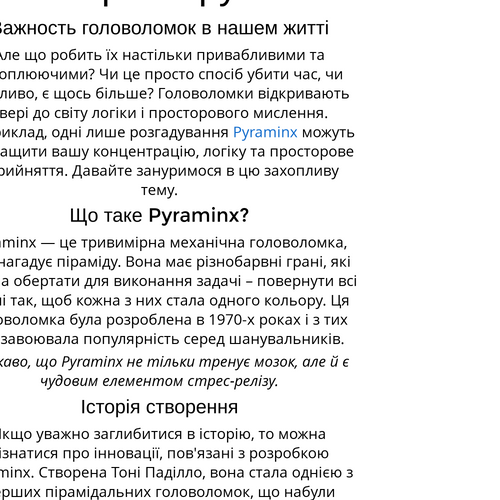 💡 Цікаво, що Pyraminx не тільки тренує мозок, але й є чудовим елементом стрес-релізу.