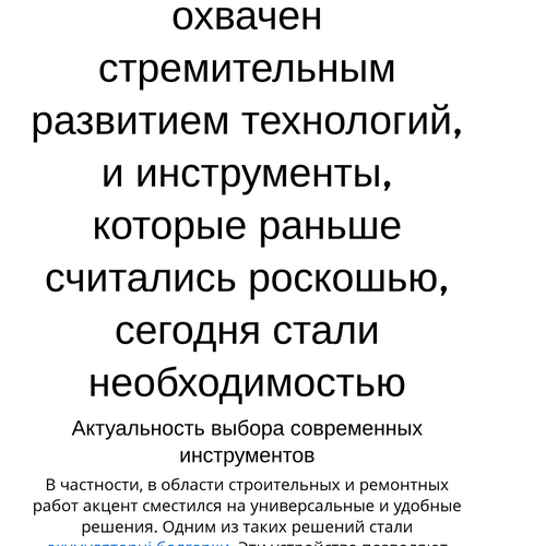 В частности, в области строительных и ремонтных работ акцент сместился на универсальные и удобные решения. Одним из таких решений стали акумуляторні болгарки. Эти устройства позволяют выполнять широкий спектр задач — от резки до шлифовки, обеспечивая свободу движений и доступ к труднодоступным местам.
