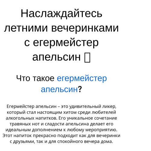 Егермейстер апельсин – это удивительный ликер, который стал настоящим хитом среди любителей алкогольных напитков. Его уникальное сочетание травяных нот и сладости апельсина делает его идеальным дополнением к любому мероприятию. Этот напиток прекрасно подходит как для вечеринки с друзьями, так и для спокойного вечера дома.