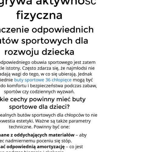 Wybór idealnych butów sportowych dla chłopców to nie tylko kwestia estetyki. Ważne są także parametry techniczne. Powinny być one: