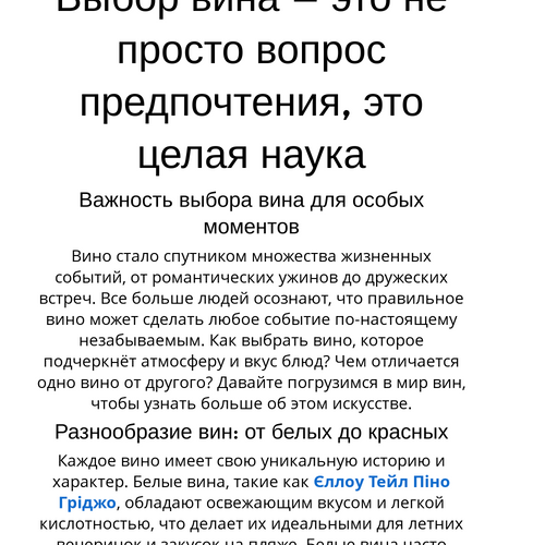 Вино стало спутником множества жизненных событий, от романтических ужинов до дружеских встреч. Все больше людей осознают, что правильное вино может сделать любое событие по-настоящему незабываемым. Как выбрать вино, которое подчеркнёт атмосферу и вкус блюд? Чем отличается одно вино от другого? Давайте погрузимся в мир вин, чтобы узнать больше об этом искусстве.